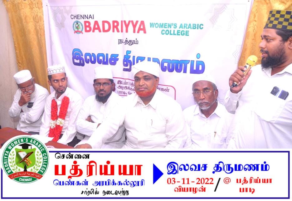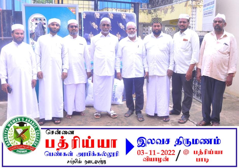 Head of Badriyya women's Arabic college Located at Periyar 2nd Cross Street, TMP Nagar, Padi, Chennai (South India), is a dedicated institution for Islamic education for Muslim women. With the guiding thought that “a pious lady is the richest treasure of the world,” the college aims to nurture knowledgeable, confident, and spiritually grounded women through structured Islamic learning.